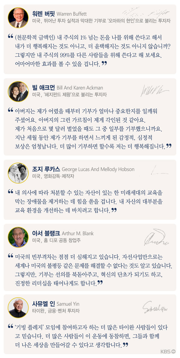 오늘은 전 세계 기부 TOP10 분과 한국의 기부 또한 알아 보았습니다.