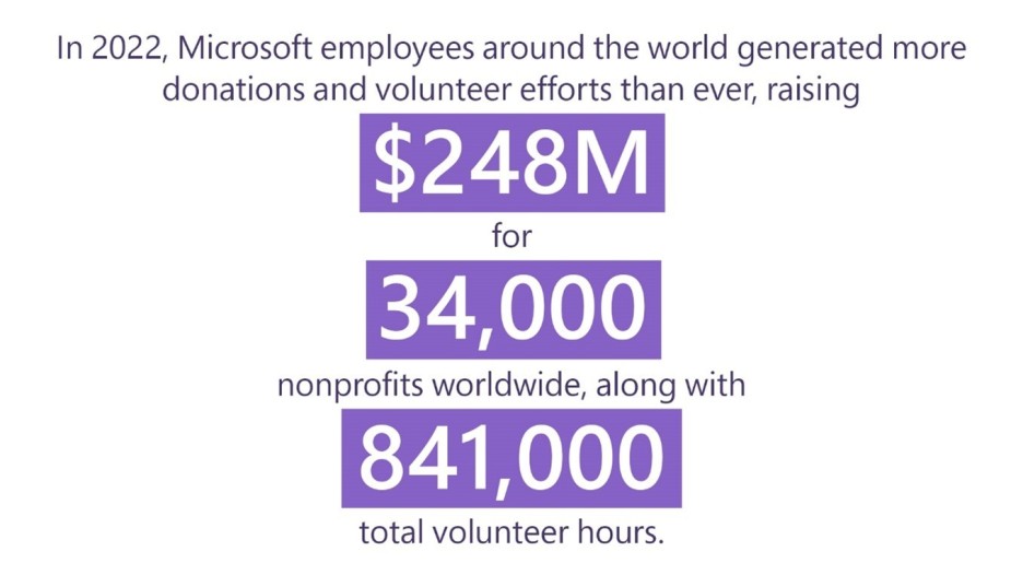 마이크로소프트는 빌 & 멜린다 게이츠 재단을 통해 전 세계적인 자선 활동을 지원하고 있습니다. 또한, 교육, 환경 보호, 지역 사회 발전 등 다양한 분야에 기부하고 있습니다.