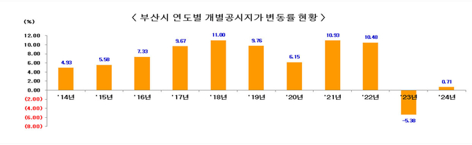 16개 광역시 및 특별자치시 토지 가격 상승률로 보았을 시