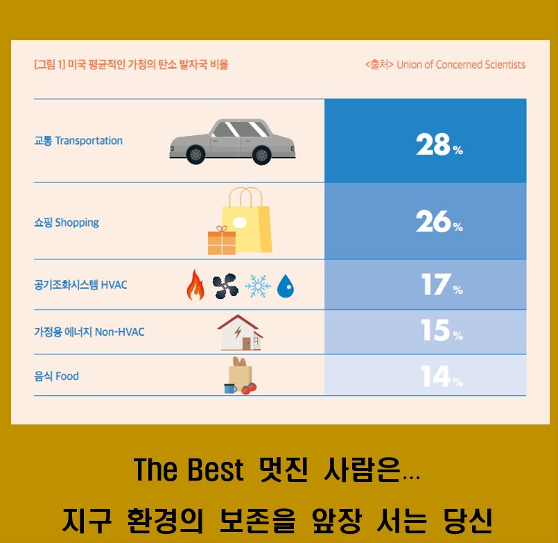Q. 그런데 사람이 탄소발생과 지구온난화에 악영향을 미치잖아. 멋진 사람은 어떻게 이를 대처할까?
