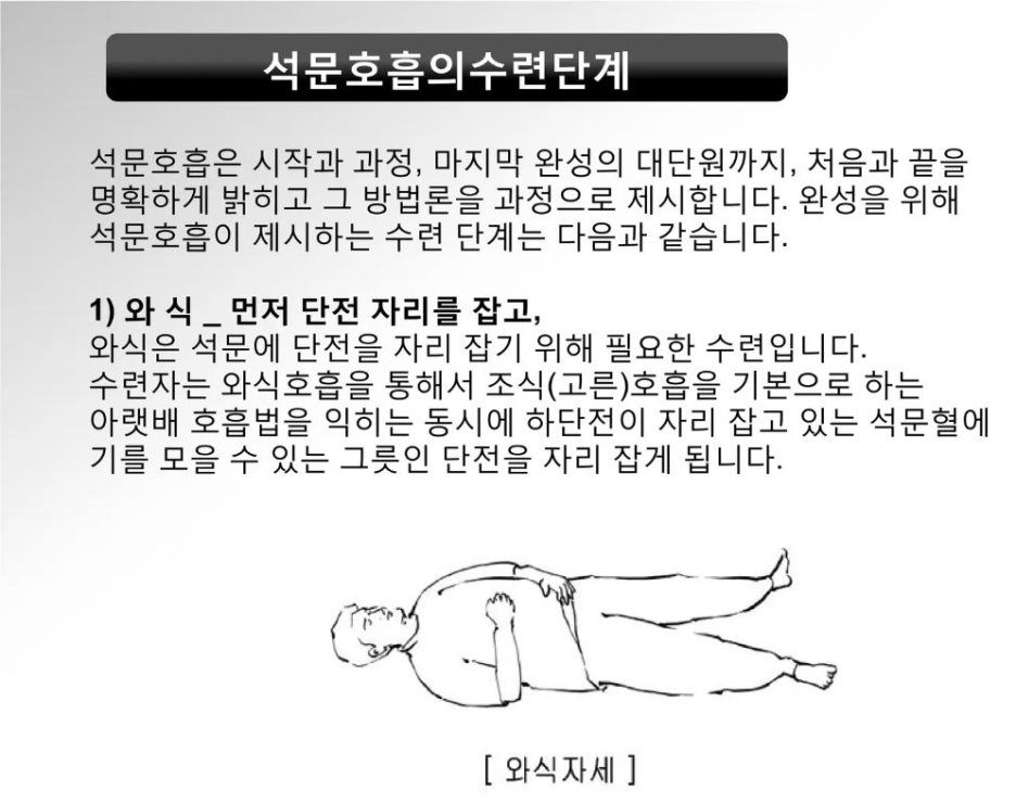 그래서 석문호흡 책에 나와 있는 ‘와식’ 부터 진행하시기를 추천을 드립니다.