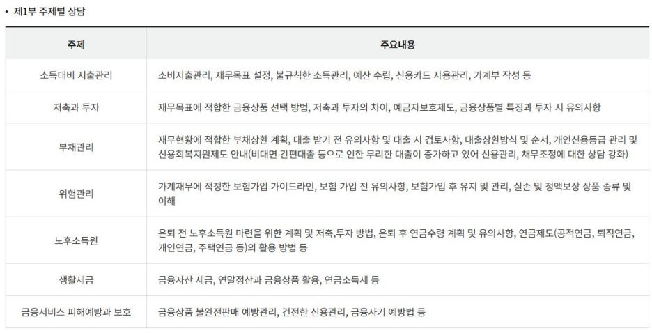 상담을 할 수 있는 내용은 아래와 같이 다양하다.