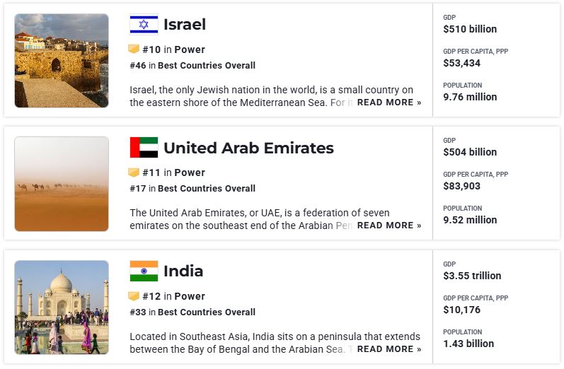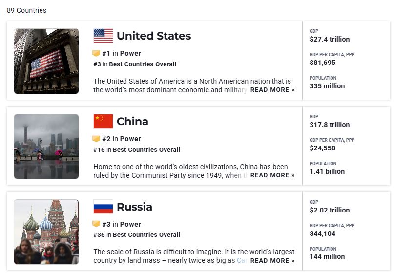 So, I searched the website that provided this data. It was the ‘POWER’ category on the US News website, which they observe annually. AI misunderstood ‘national power’. This was actually a military power ranking.