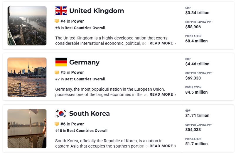 From the US perspective, South Korea’s rank is #18, but since our national power is something our generation is building, I support and encourage everyone who is working hard for South Korea to achieve the #1 overall score, and I praise all the beautiful citizens of South Korea who are doing their best and working hard today.