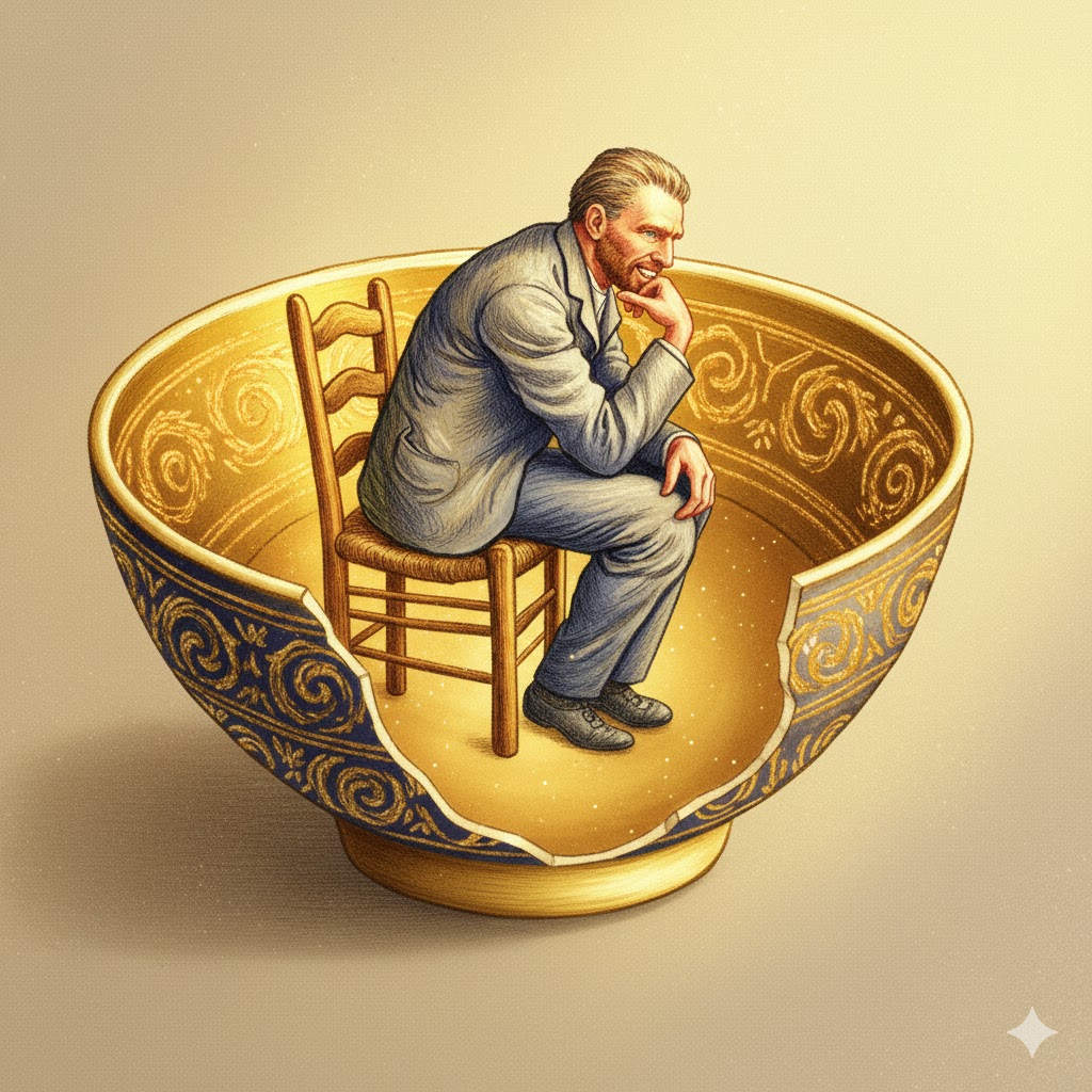 Ich bin jemand, der sich entschlossen hat, sein Gefäß zu vergrößern. Ich habe es erweitert, ich tue es noch immer und ich ringe täglich mit dem Ich, das in die Vergangenheit zurückfallen will. In diesem Prozess liegen Verinnerlichung, Entwicklung und Wachstum; Stück für Stück wird das Gefäß größer. Je mehr es wächst, desto größer wird auch das Leiden (Go, 苦). So gehe ich schweigend den Weg von Mugomudo (無故無道 – keine alten Gewohnheiten, kein vorgezeichneter Pfad) und Ilsin-u-uilsin (日新又又日新 – tägliche Erneuerung, immer und immer wieder).