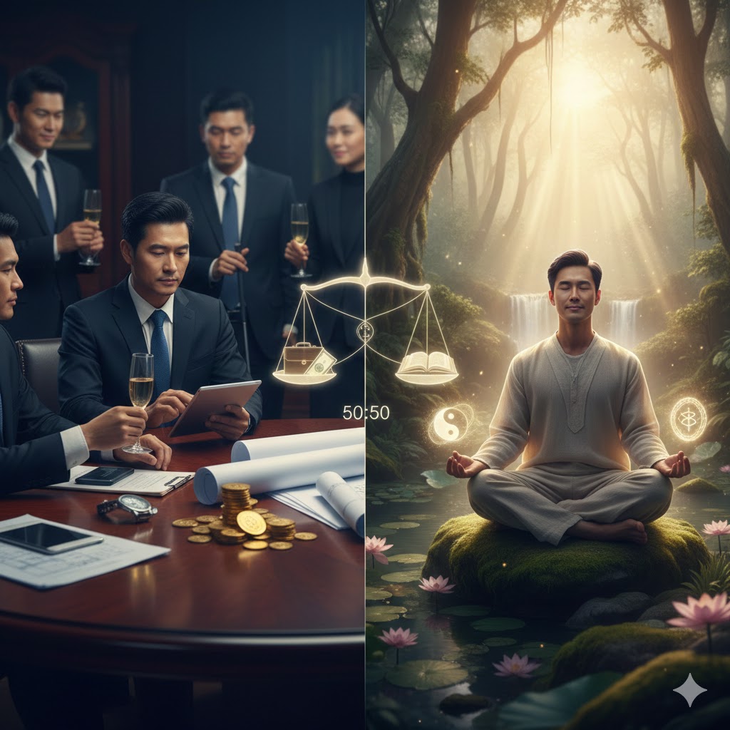 I always emphasize the need for balance. Because I am certain of the coexistence of the material and the immaterial worlds, I insist that life itself must be a harmonious blend of both. If the material life is finite while the immaterial life is infinite, their relative importance exists on entirely different dimensions. However, since we exist in a physical world, I believe a 50:50 ratio of materiality to spirituality is the minimum requirement—though even that feels insufficient.