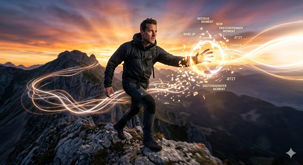Es kommt der entscheidende Moment in unserem Leben. Dieser Moment ist die Summe aus einer sekundenlangen Wahl, einem kurzen Gespräch und einer flüchtigen Emotion – ein Augenblick, der höchste Konzentration erfordert, um zu reagieren, zu wählen, zu entscheiden und voranzuschreiten. Es ist so, als würde man eine Chance ergreifen und sie zu seiner eigenen machen. Um diese Kraft zu besitzen, eine Gelegenheit im richtigen Moment zu packen, muss man hellwach sein.