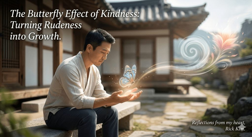 I used to think a lot about fighting back against rude people. However, once I realized that the root of the problem began with me, I learned that healing only comes when I forgive them—and myself. True forgiveness lies in helping them realize their own rudeness, not through confrontation, but through service, forgiveness, and blessing. I feel that the “butterfly effect” starting from me always returns as a powerful storm. Thus, I continue to strive for a “virtuous flutter of wings” today. Doing my absolute best is the only way to deal with rudeness.